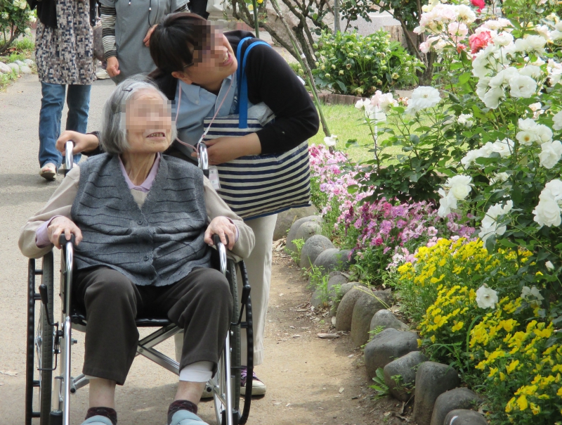 5月中、ショートステイの外出行事ではバラ園を見学に行きました。